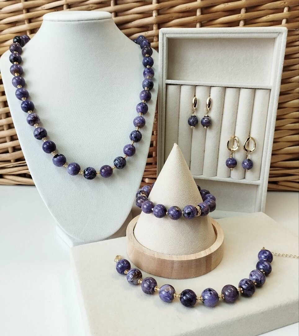 С этим клиентом мы работаем давно, поэтому подбор прошёл быстро и спокойно: опирались на прошлые продажи и реакцию покупателей. Мы собрали ассортимент, который вызывает эмоцию «вау» прямо у витрины — переливы Султанита, глубокий фиолет Чароита, природные кристаллы, которые хочется взять в руки.